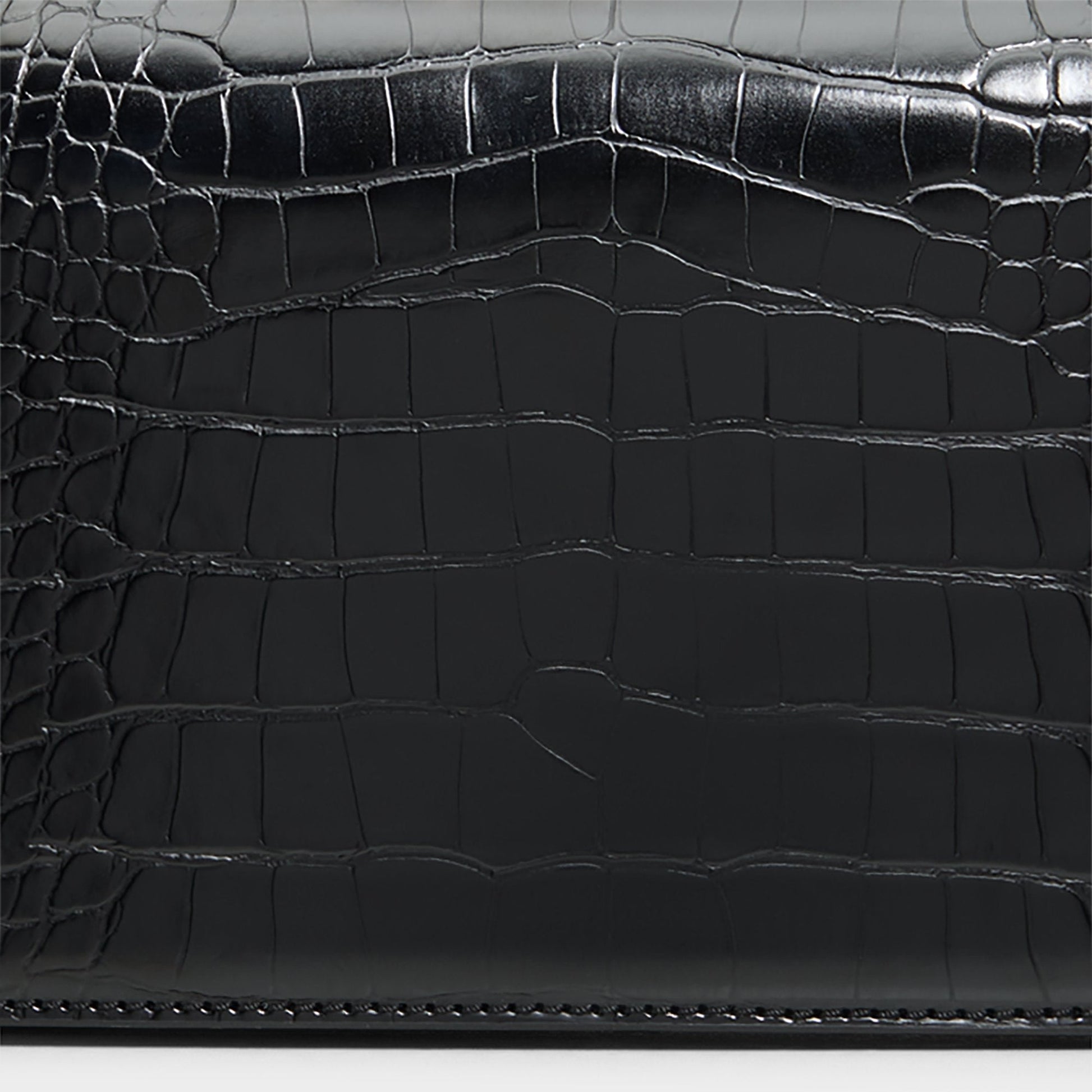 Croc-embossed trapeze silhouette with ornate ring handles makes this bag feel like wearable jewelry, while transforming top-handles snap into a secure metal frame for effortless carry from city errands to rooftop dinners. Carry it with an oversized blazer for city nights or sling it with dress and denim for a versatile finish to any look.