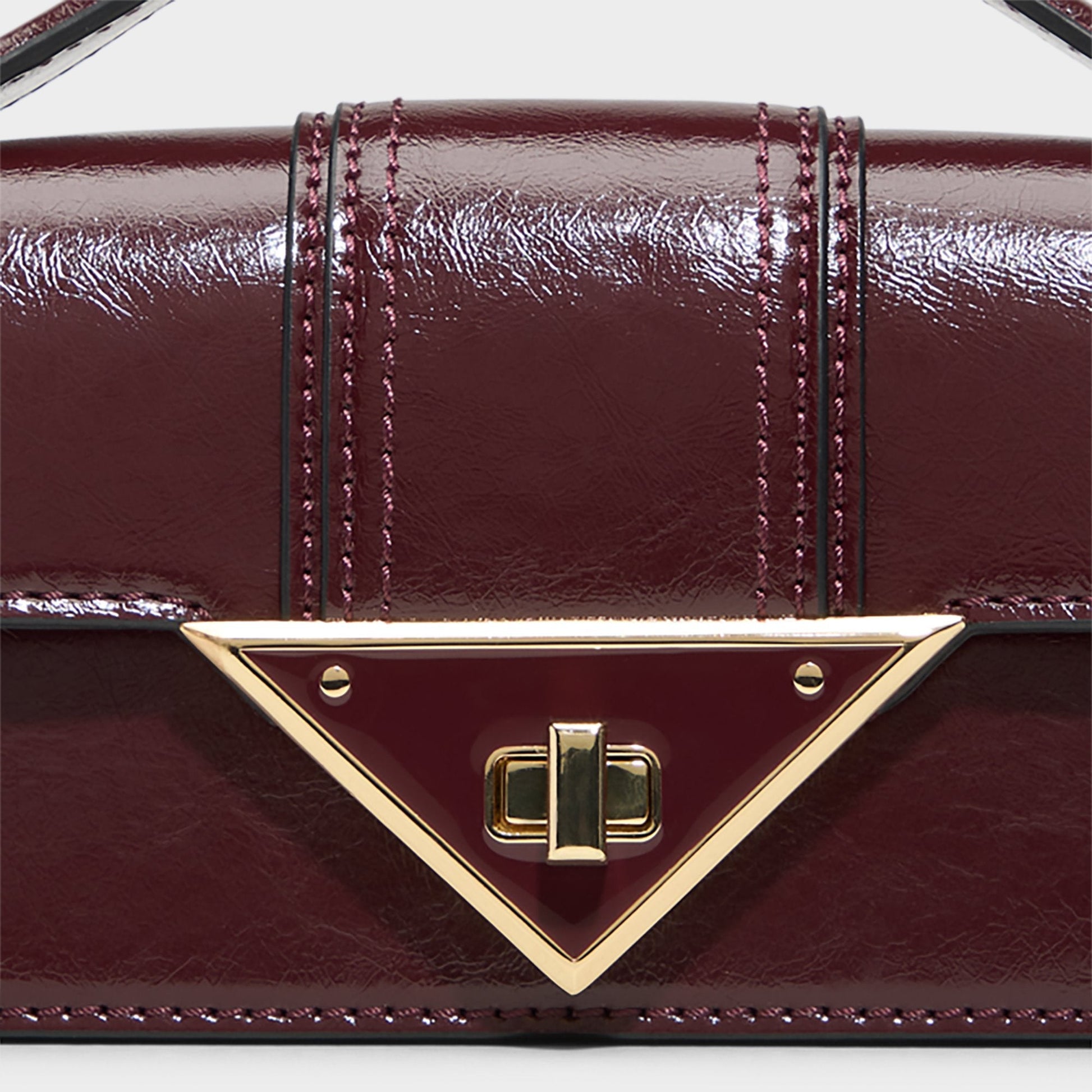 The Brimeaax top-handle bag combines elegant, refined style with a bold bordo hue and a geometric silhouette. Crafted from shiny material, this sophisticated accessory adds a polished touch to any ensemble. Its structured design balances modern edge with timeless appeal, making it an ideal choice for those seeking a statement piece with subtle luxury.