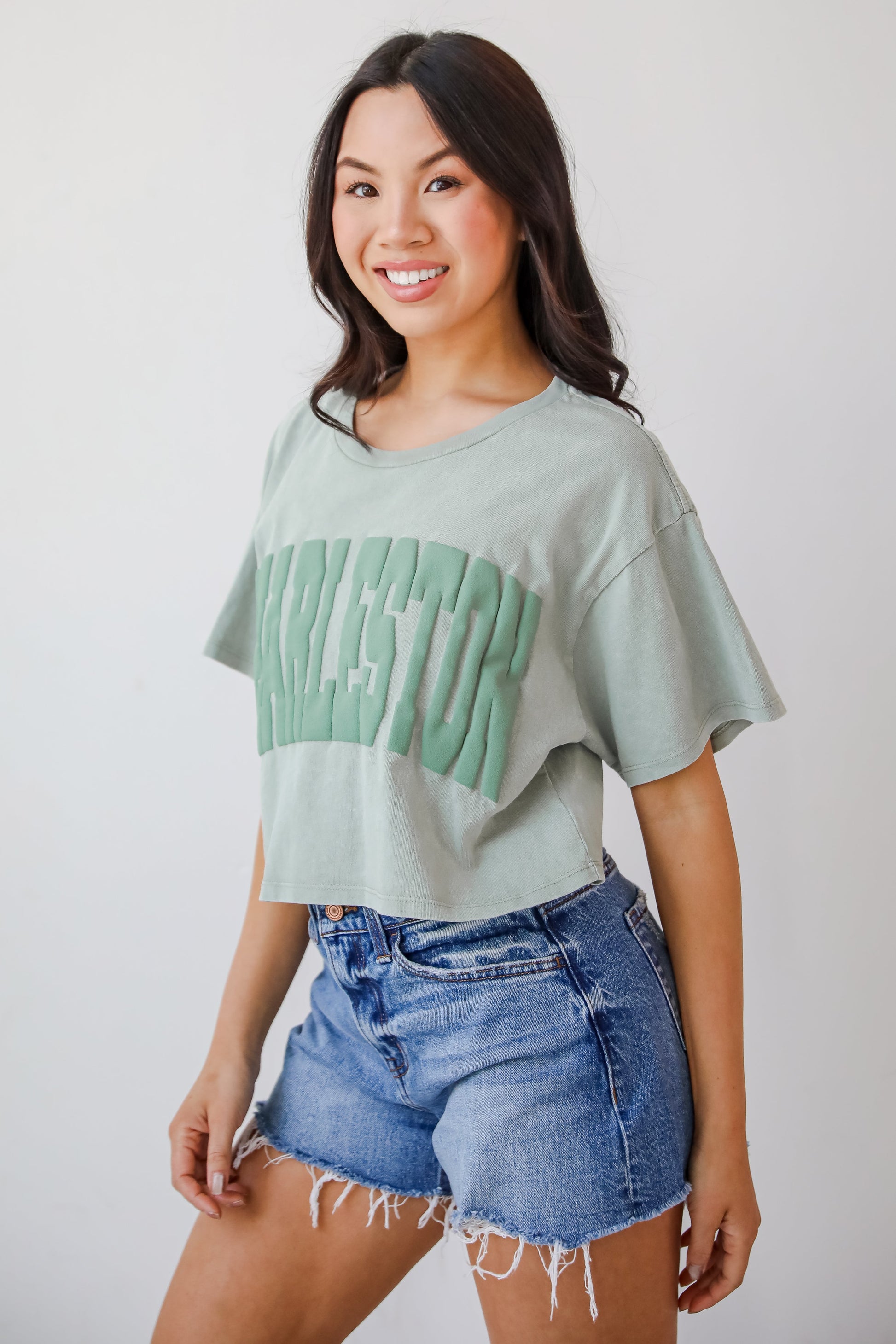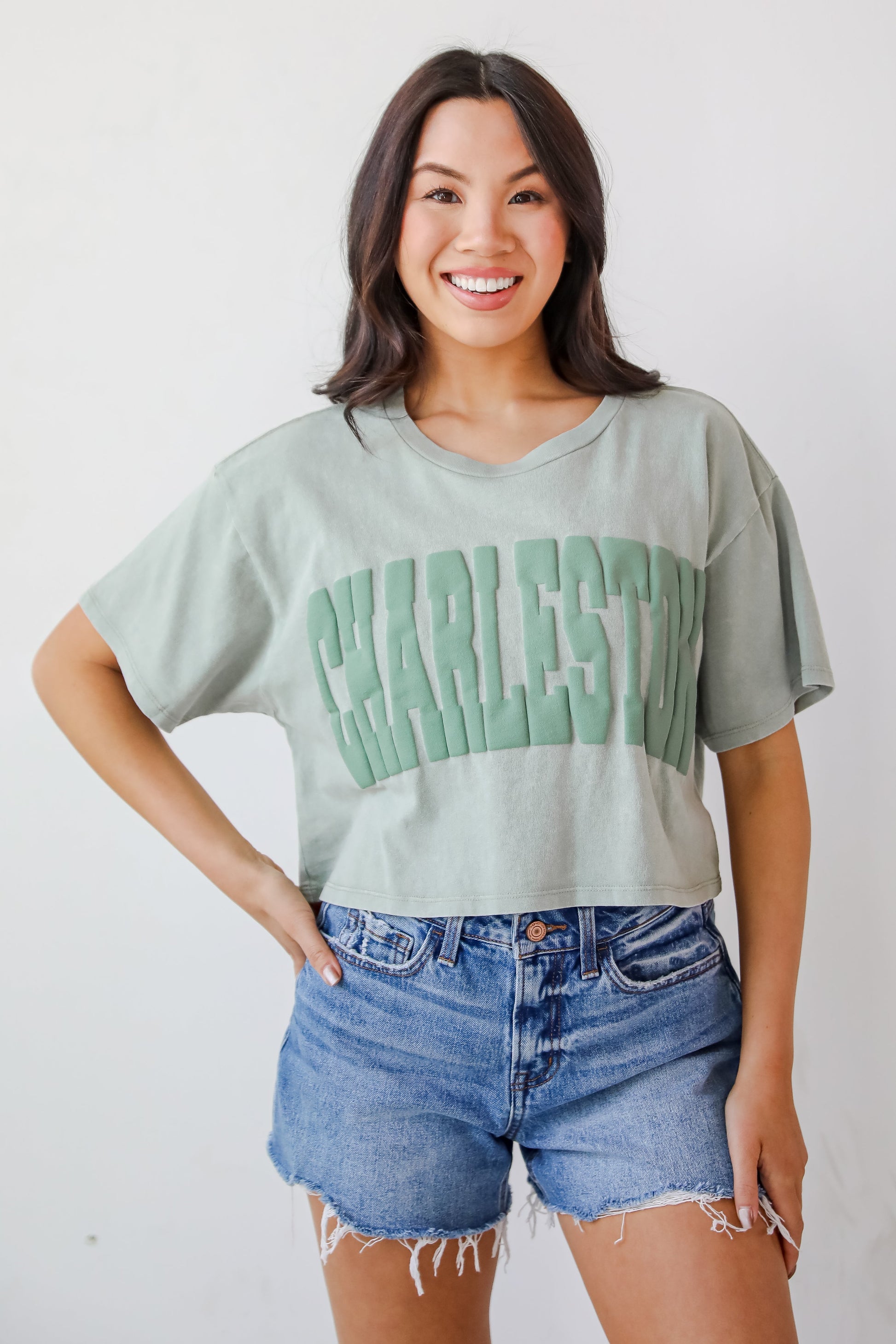 Calling all Charleston residents, the Charleston Cropped Tee was made just for you! This comfy tee is designed with a soft and stretchy lightweight knit. It features a crew neckline, short sleeves, and a relaxed mid-crop fit with “Charleston' on the front. Style the Charleston Cropped Tee with your favorite denim shorts and sneakers for a casual look! Available in 2 colors.