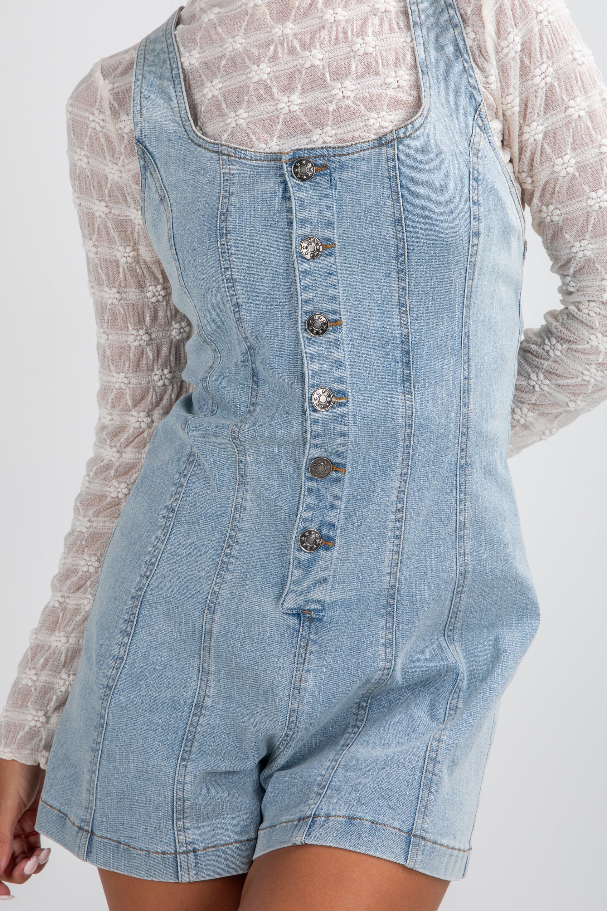 The Cool Contrast Light Wash Denim Romper is a playful and stylish staple for warm days! Featuring a sleeveless design and a flattering crisscross back detail, this romper combines comfort with a flirty, modern twist. The light wash denim gives it a casual, versatile vibe, making it perfect for pairing with sneakers for a daytime look or sandals for a laid-back weekend outfit!