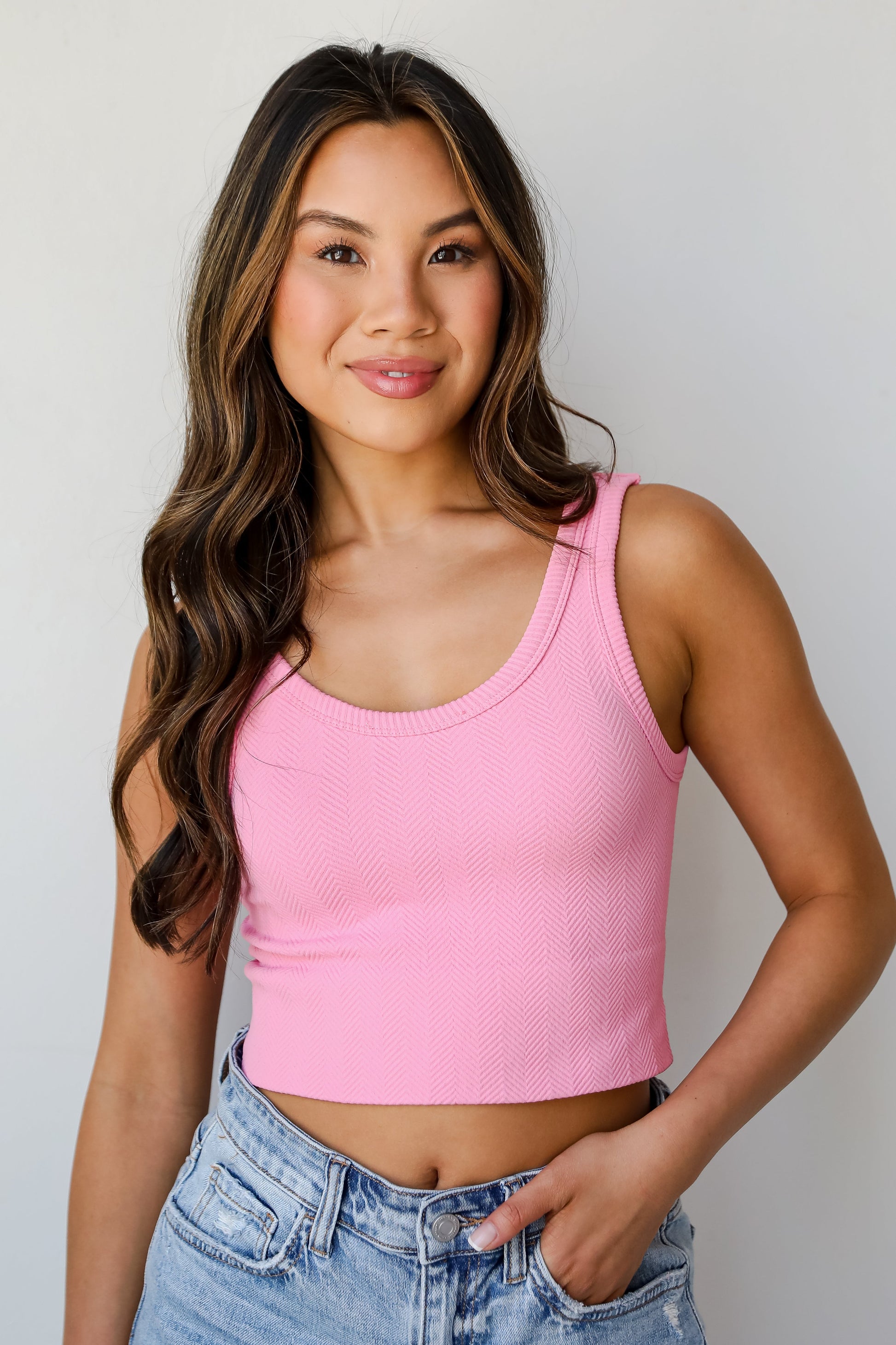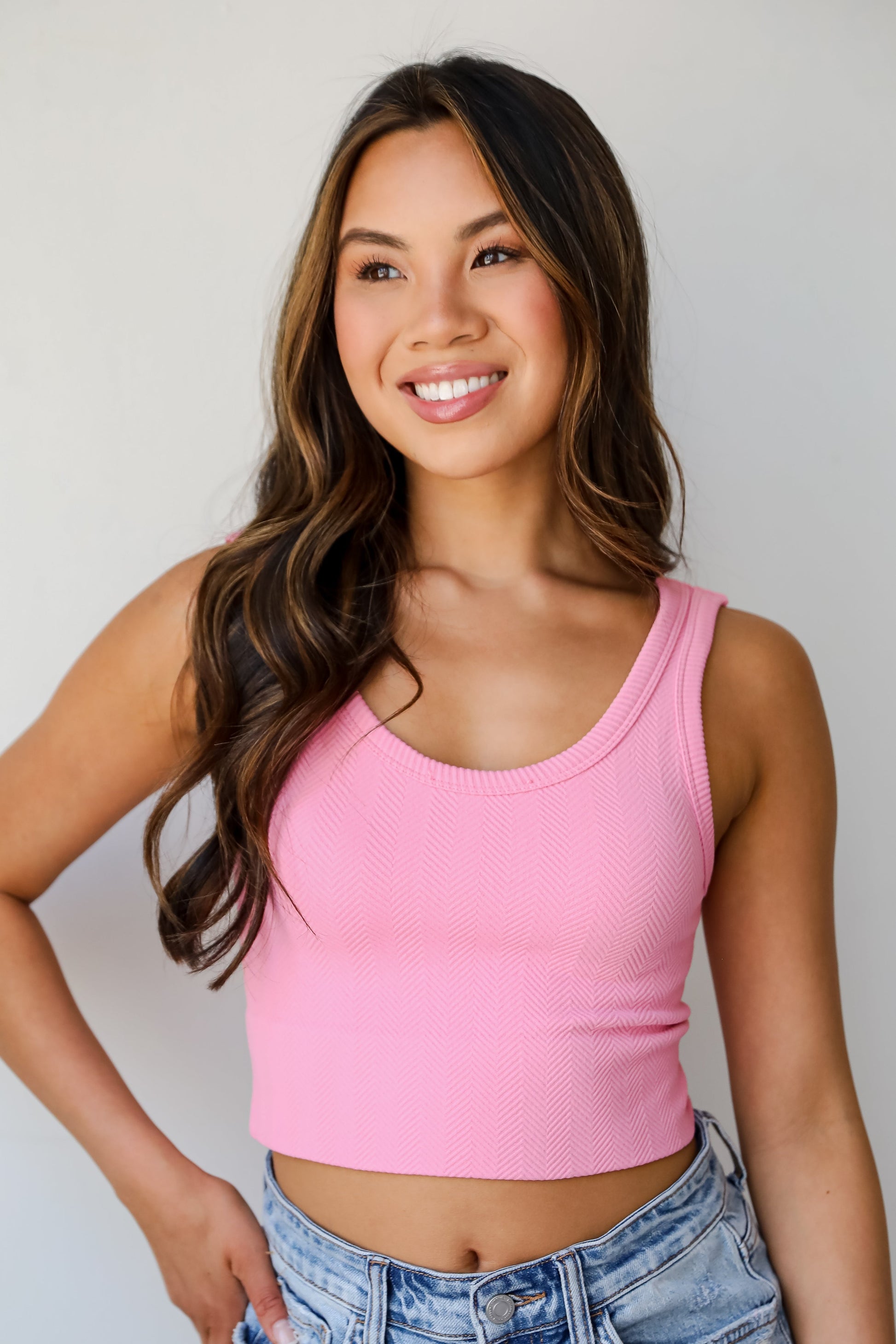 We're ready to hit the town (and court) in the Get Set Seamless Cropped Tank! Crafted with innovative seamless technology, this tank offers a smooth, second-skin fit that feels comfortable and supportive all day long. The tank features a flattering cropped silhouette, perfect for pairing with high-waisted leggings or shorts for a trendy and streamlined look. The seamless construction ensures minimal irritation and maximum flexibility, making it ideal for workouts, yoga sessions, or everyday wear. Crafted from a blend of soft and stretchy materials, this tank provides moisture-wicking properties to keep you cool and dry during intense activities. Whether you're hitting the gym, running errands, or lounging at home, this seamless cropped tank is sure to become a go-to favorite in your wardrobe! Available in 5 colors.