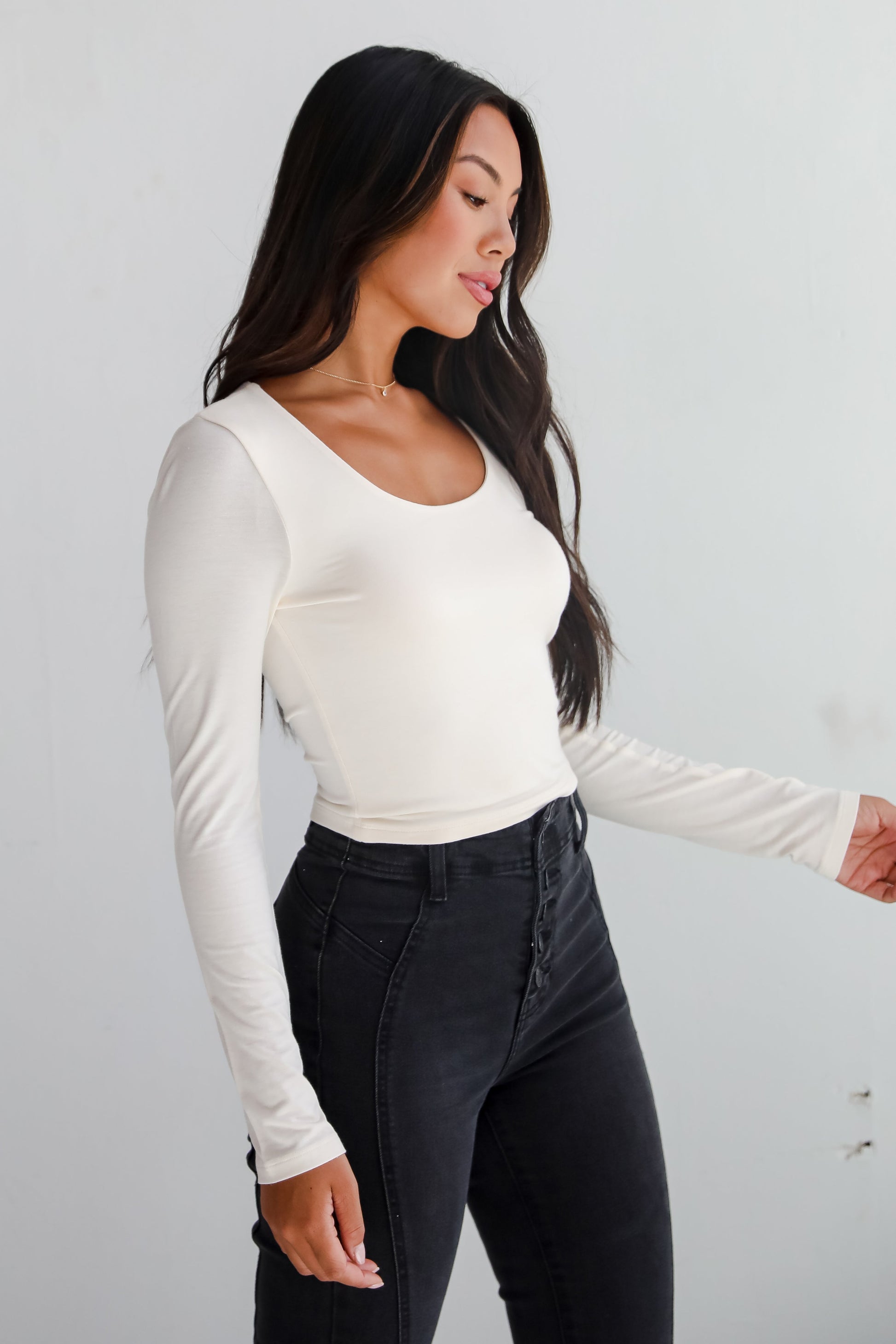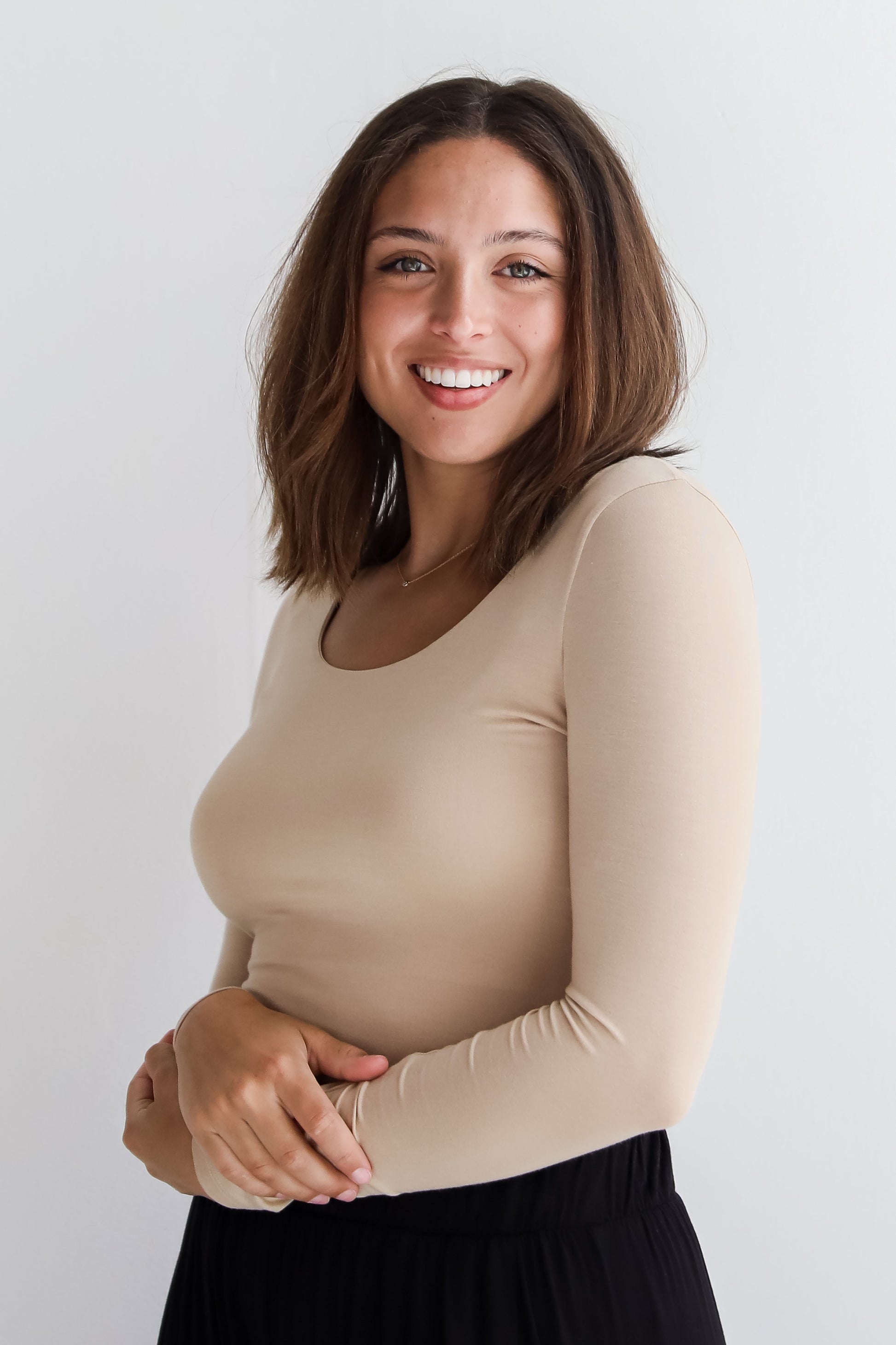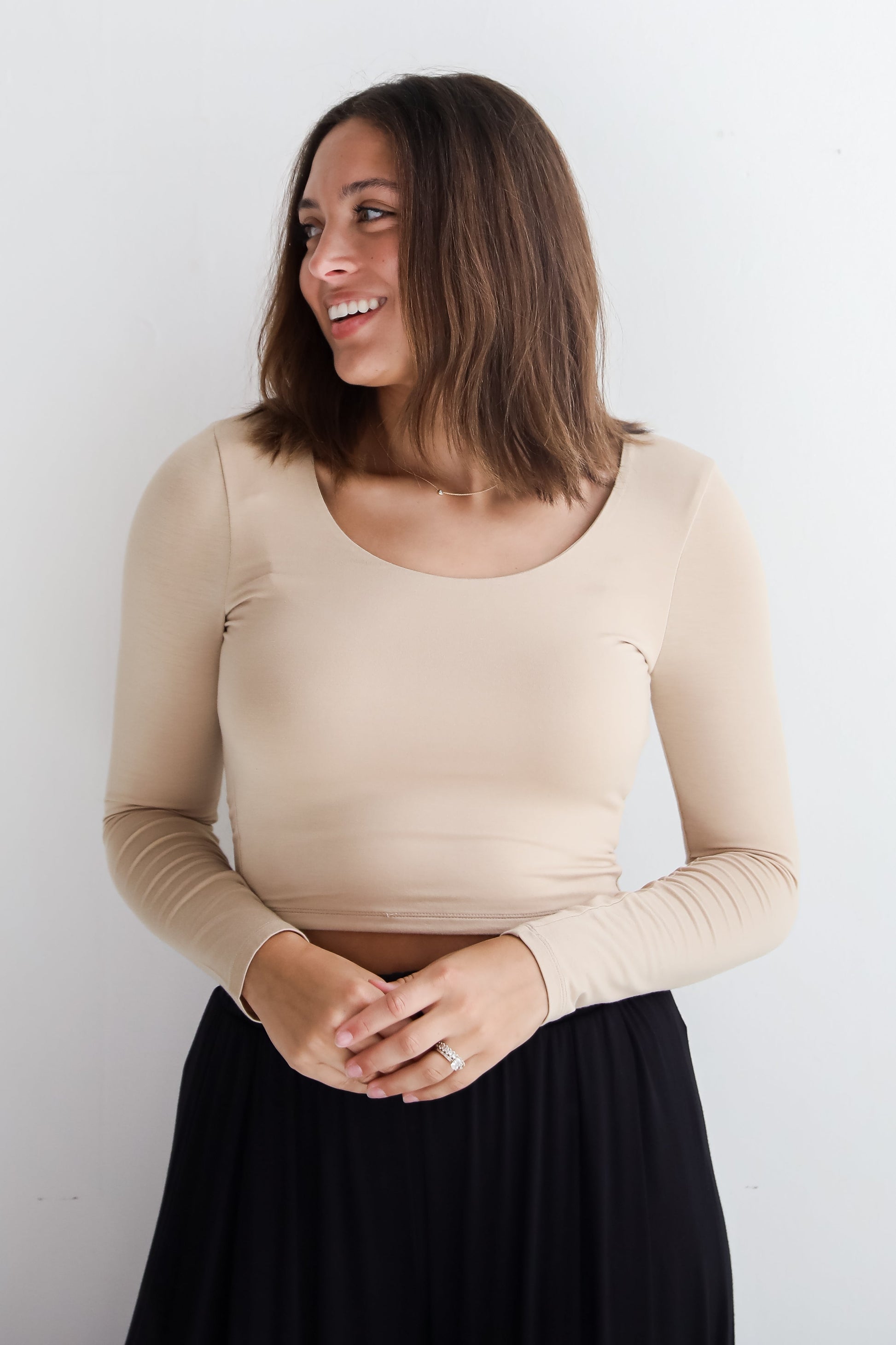 Liz Everyday Scoop Neck Long Sleeve Cropped Tee