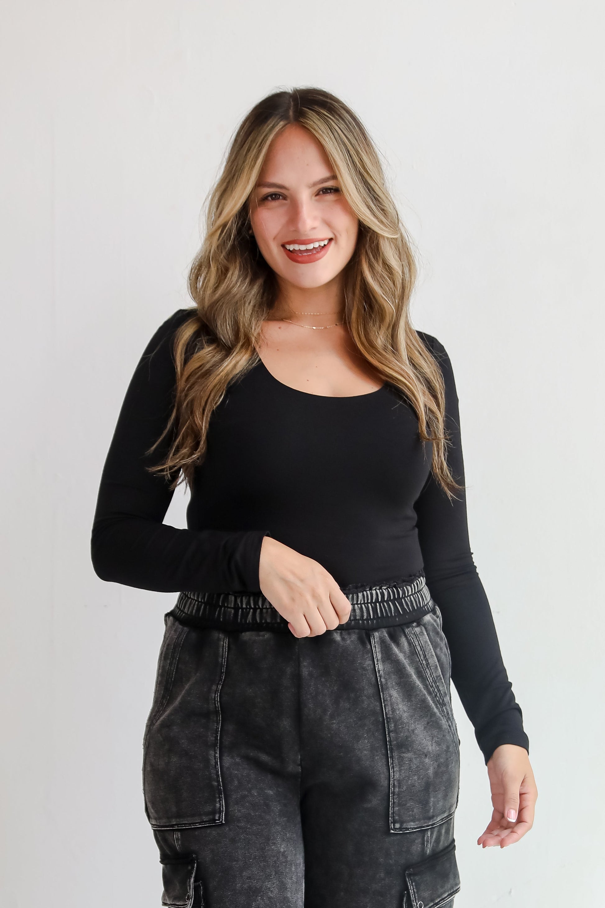 Discover the perfect blend of comfort and style with the Liz Everyday Scoop Neck Long Sleeve Cropped Tee! This versatile piece features a classic scoop neck and long sleeves, making it ideal for layering or wearing on its own. The cropped length adds a modern touch, perfect for pairing with high-waisted jeans, skirts, or leggings. Crafted from soft, breathable fabric, this tee offers all-day comfort and a flattering fit. Available in a range of colors, it’s a staple that effortlessly transitions between seasons and occasions, ensuring you always look and feel your best! Available in 3 colors.